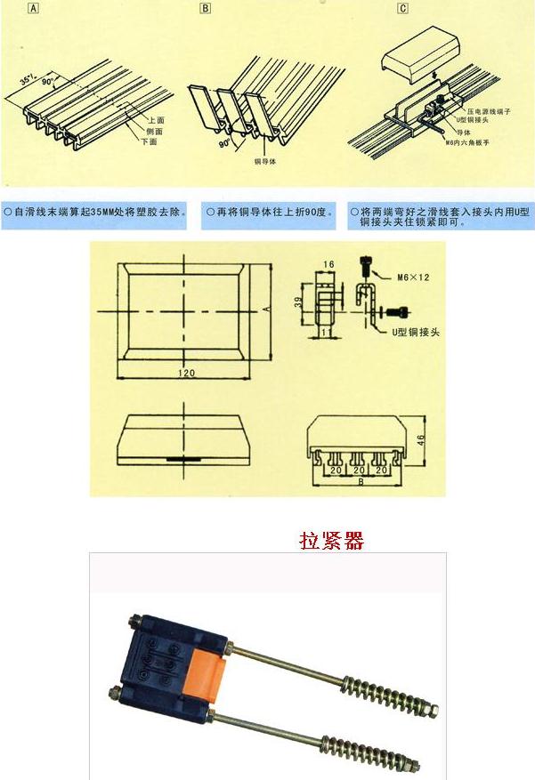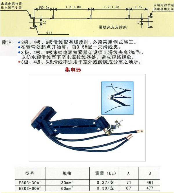 柔性一體式滑觸線是以無氧銅(導電率達99.99%)輸送電源、銅導體之厚度厚(一般標準厚為2.8m/m×10W)、壓降小、導電率倍佳;可根據(jù)用戶的車間長度或用戶的需求來配一條以之相同長度的安全電軌,使整個車間安全配電中間沒有任何接口,真正解決了國產(chǎn)滑觸線因接口多經(jīng)??ㄗ〖娝⒍斐啥搪坊虿荒苓\行的問題。并且適用于曲線、弧形及高低行走的設計,并且安裝簡便。從而使整套天車工程美觀、整潔又安全。產(chǎn)品有3P、